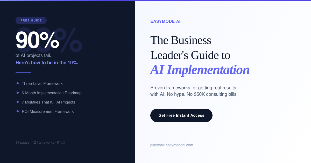 Inside: The 3-level framework for knowing exactly which AI solution to use. The operator model that scales AI without hiring. The 6-month roadmap with specific actions for each week. Plus the 7 mistakes that kill most AI initiatives (and how to avoid them).